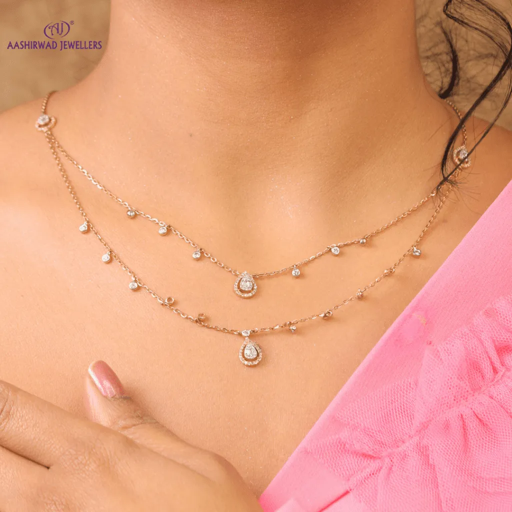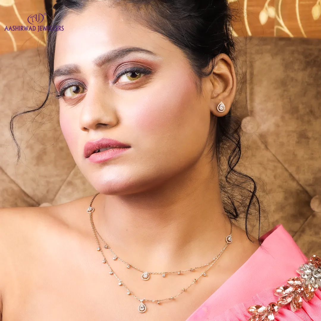 | Gold – 14 kt HLMK Earrings Weight– 2.66 gr / 0.46 ct Necklace weight– 9.22 gr/ 1.10 ct DiamondColor/clarity– IJ/VS-SI |